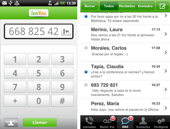 - Llamar y enviar SMS con el nuevo número de FonYou, solo pagas las llamadas y SMS de acuerdo a las tarifas de tu operadora, es decir FonYou no te cobra nada.